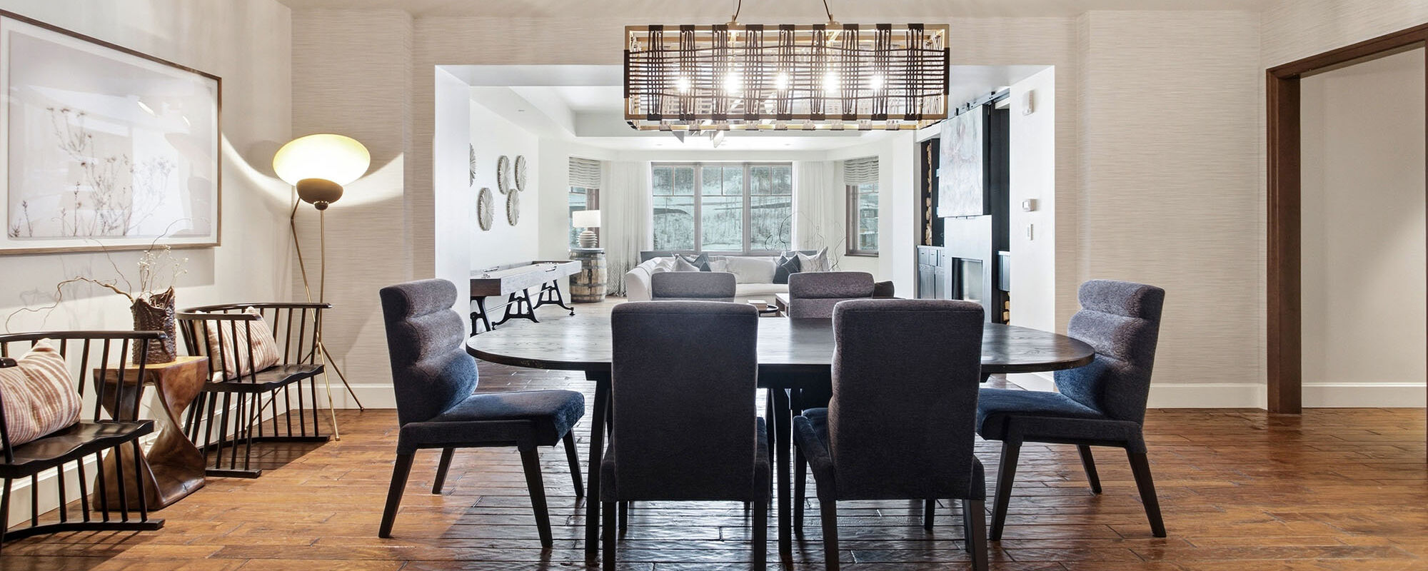 - Spanning 4,086 sq. ft., the residence features an open-concept layout ideal for both entertaining and relaxation, including an expansive living room complete with a shuffleboard table